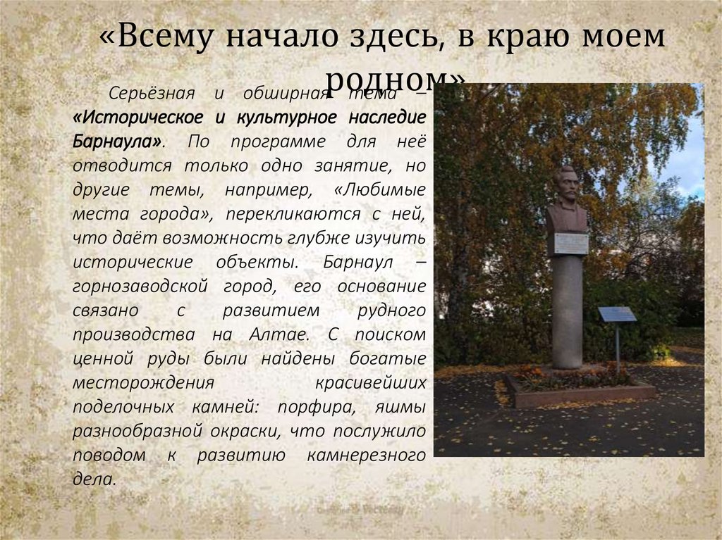 «Всему начало здесь, в краю моемСерьёзная и обширнаяродном»