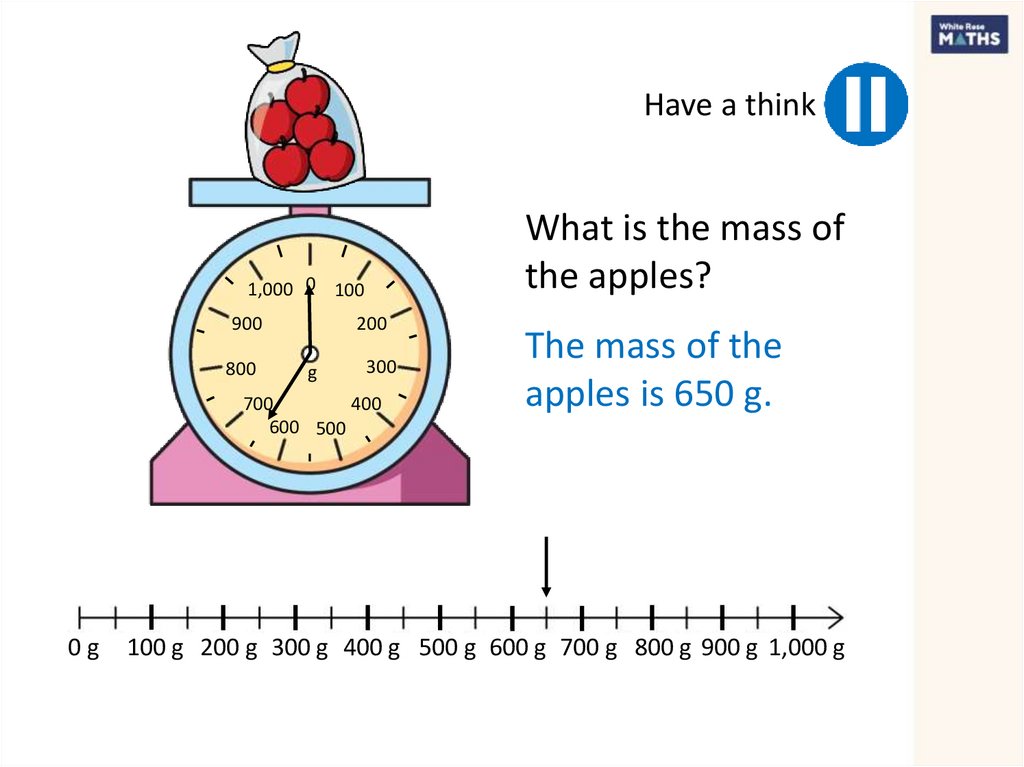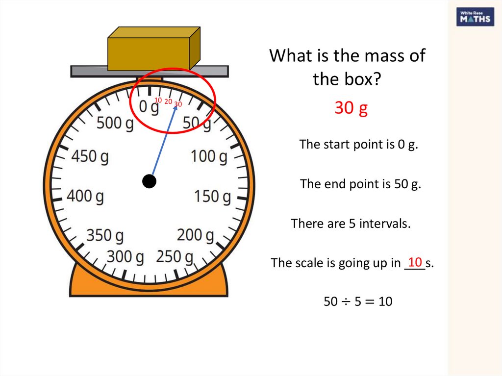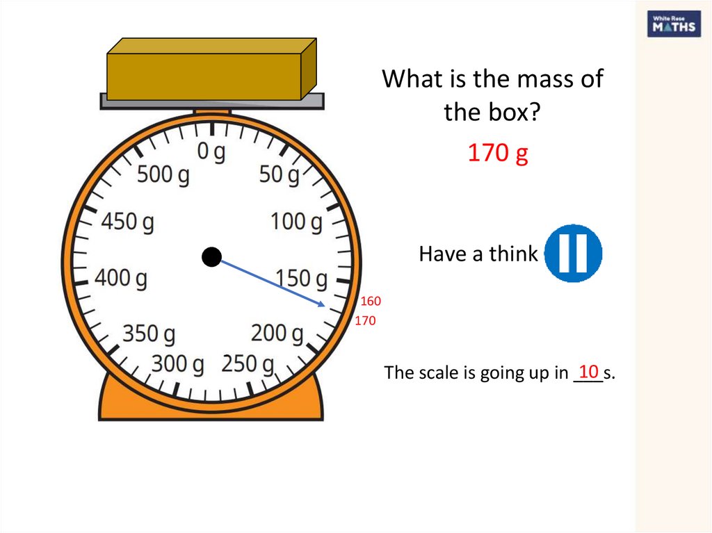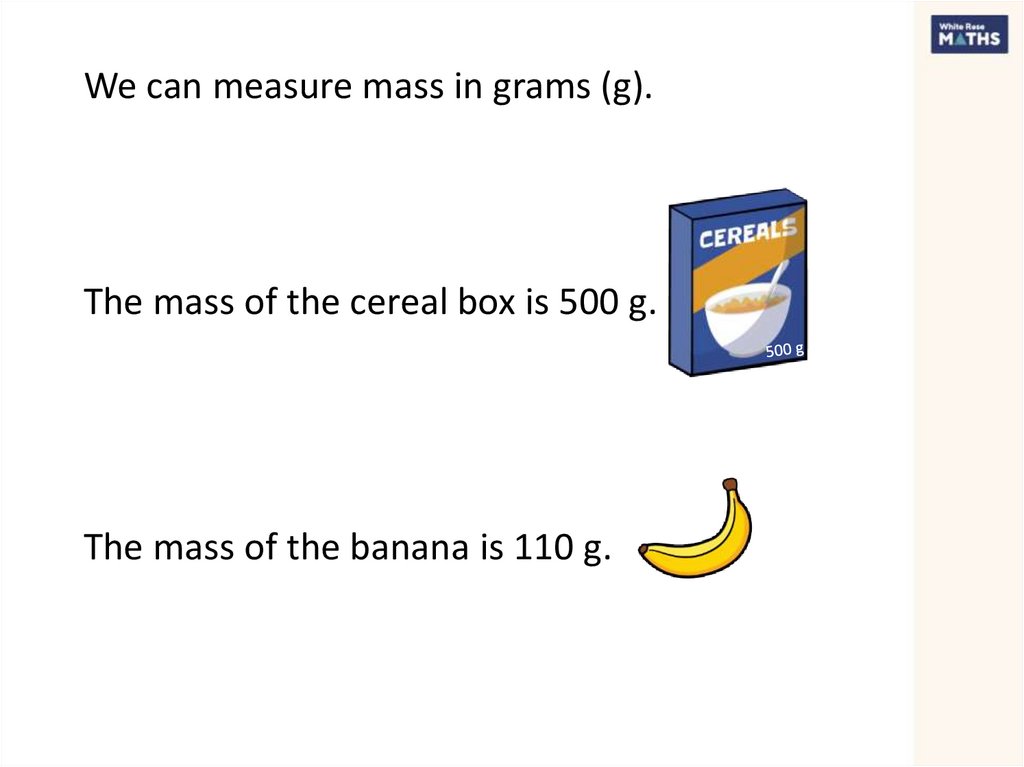 We can measure mass in grams (g).The mass of the cereal box is 500 g.