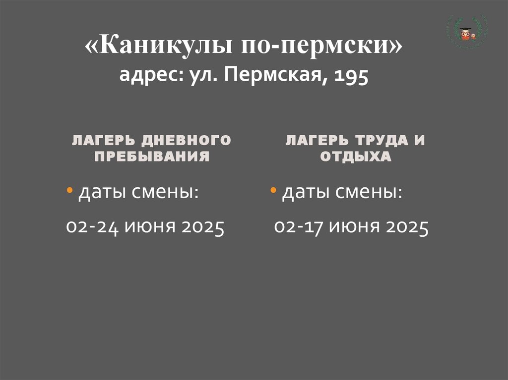 «Каникулы по-пермски»адрес: ул. Пермская, 195