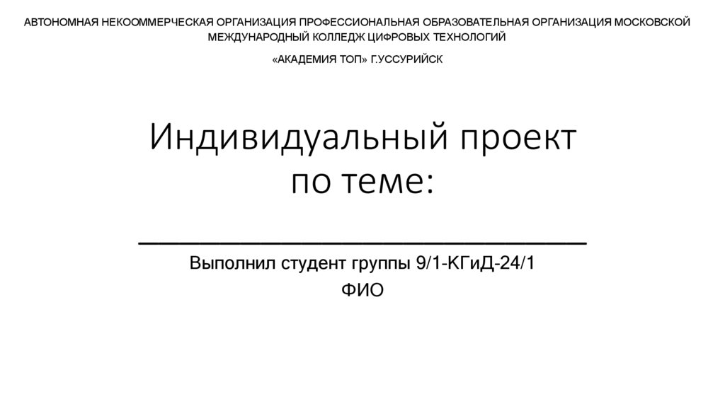 Индивидуальный проект по теме. Шаблон