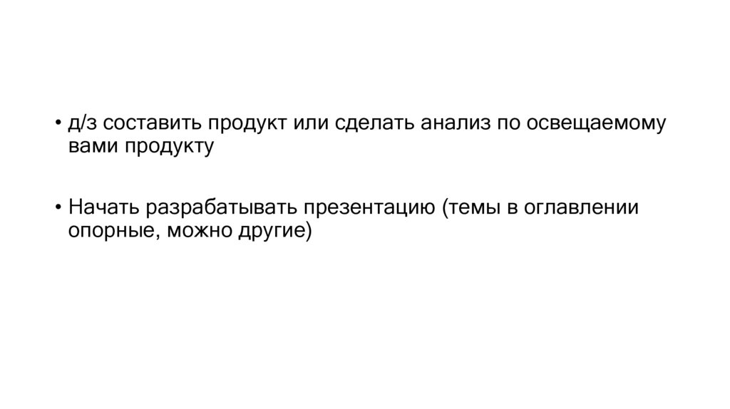 • д/з составить продукт или сделать анализ по освещаемомувами продукту