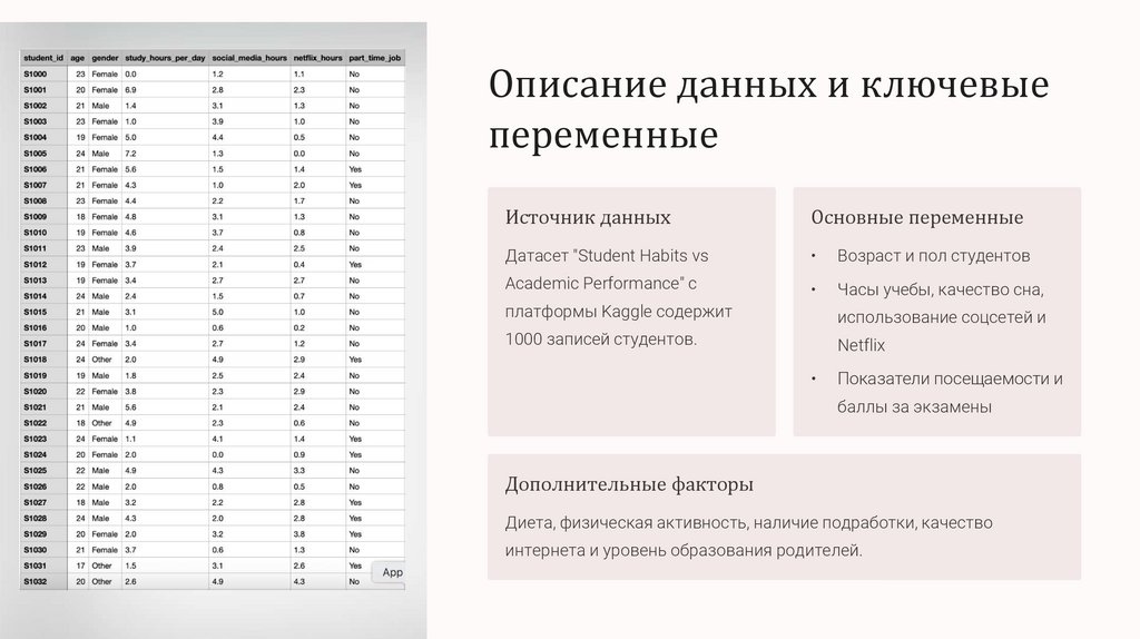 уделяемое учебе, а также влияние социальных сетей и платформ