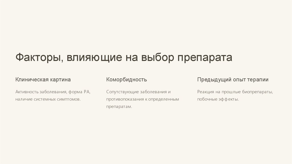 Факторы, влияющие на выбор препаратаКлиническая картина