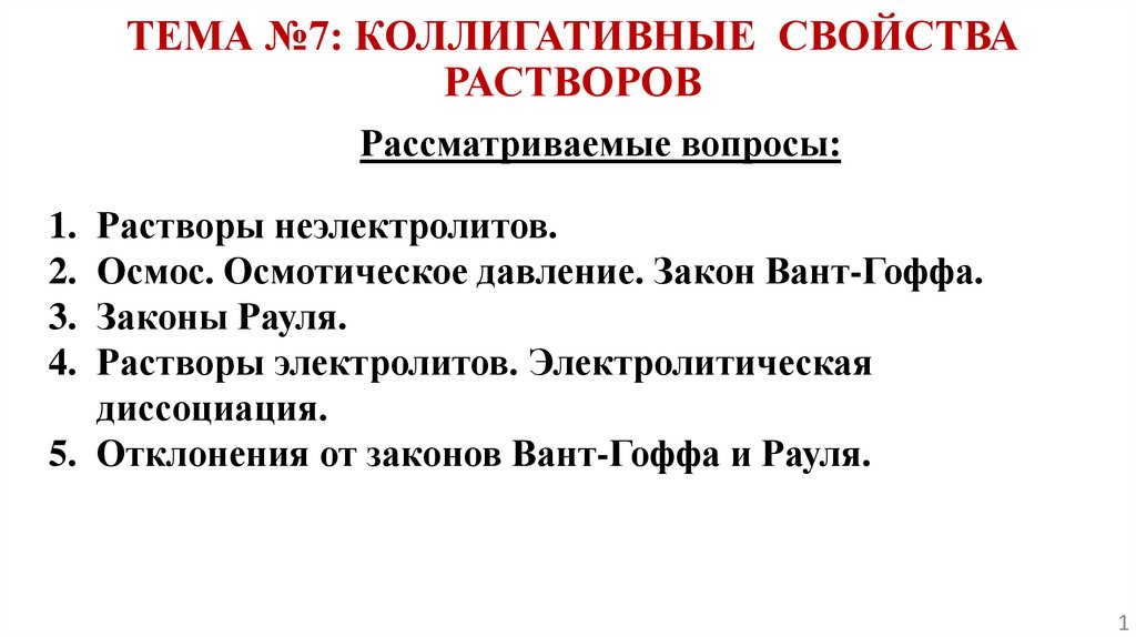 1. ТЕМА №7: КОЛЛИГАТИВНЫЕ СВОЙСТВА РАСТВОРОВ