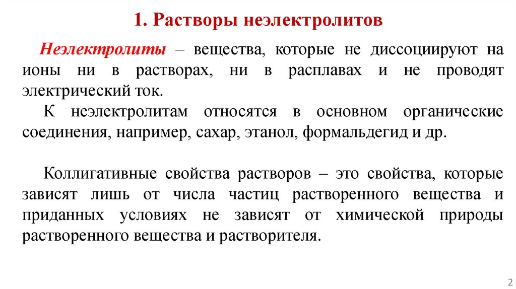 Рассматриваемые вопросы:1. Растворы неэлектролитов.