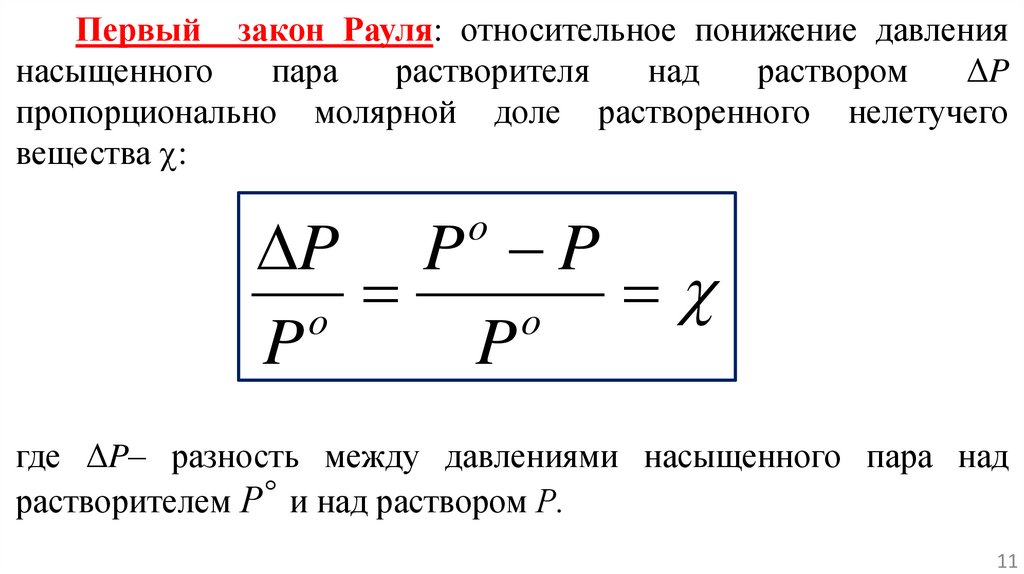 Первый закон Рауля: относительное понижение давлениянасыщенного