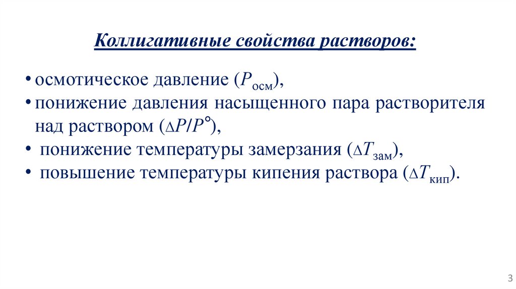Коллигативные свойства растворов:• осмотическое давление (Росм),