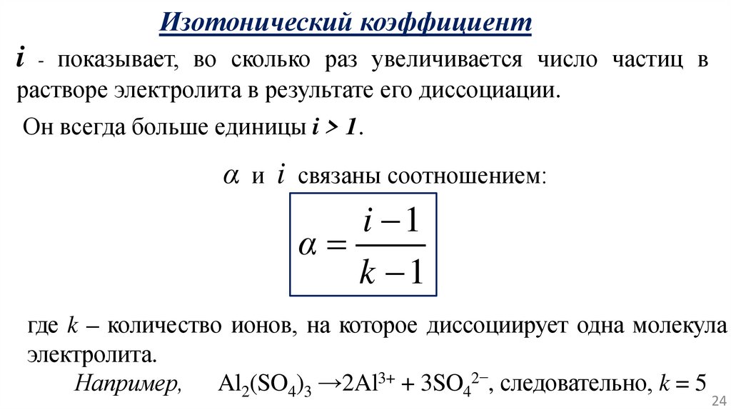 i - показывает, во сколько раз увеличивается число частиц врастворе электролита в результате его диссоциации.
