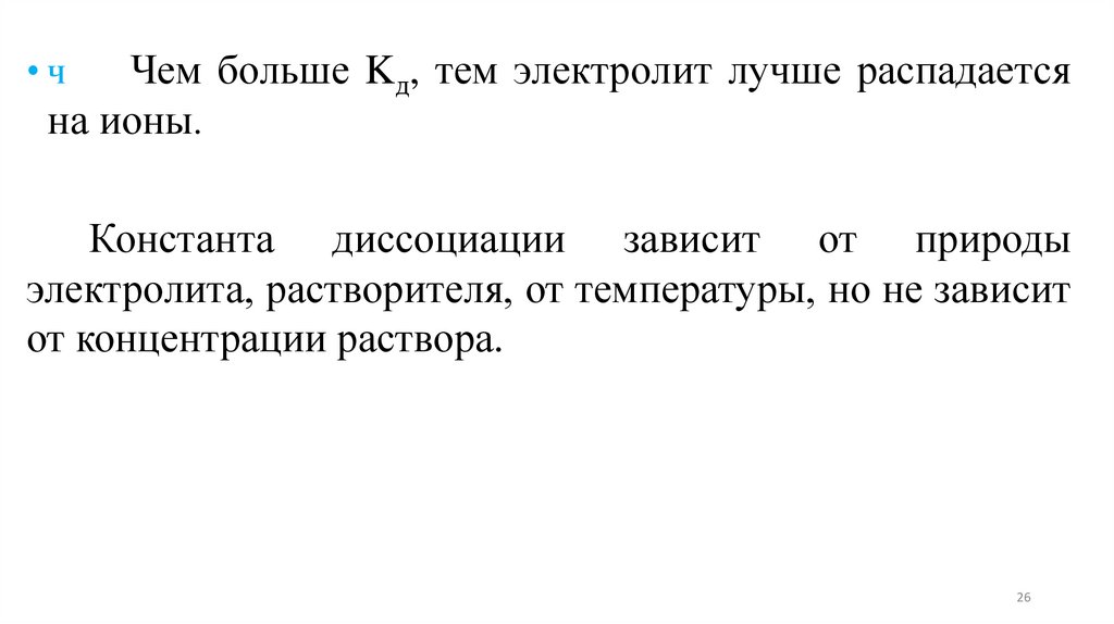 Чем больше Kд, тем электролит лучше распадаетсяна ионы.