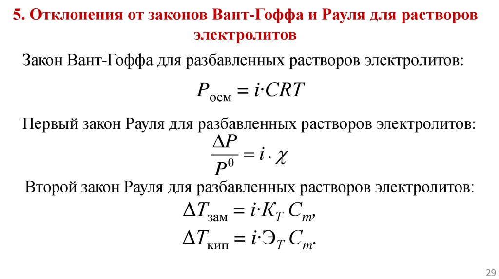 29. 5. Отклонения от законов Вант-Гоффа и Рауля для растворов электролитов