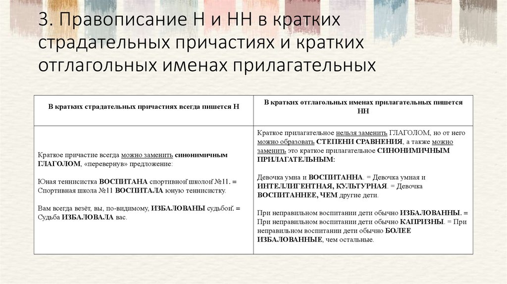 13. 3. Правописание Н и НН в кратких страдательных причастиях и кратких отглагольных именах прилагательных