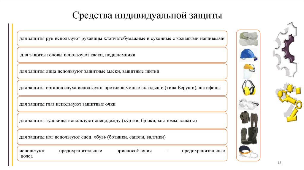 для защиты рук используют рукавицы хлопчатобумажные и суконные с кожаными нашивкамидля защиты головы используют каски, подшлемники
