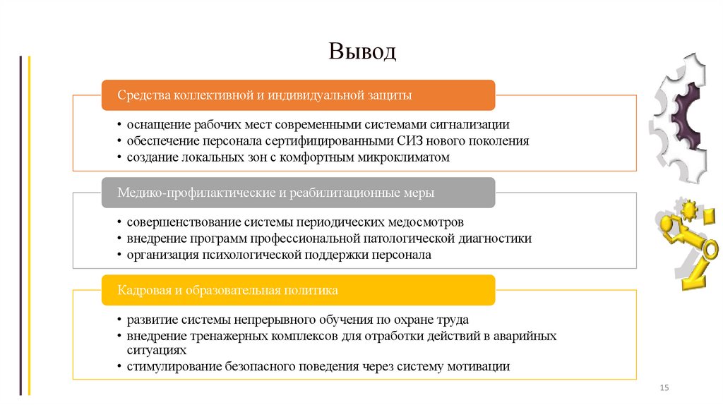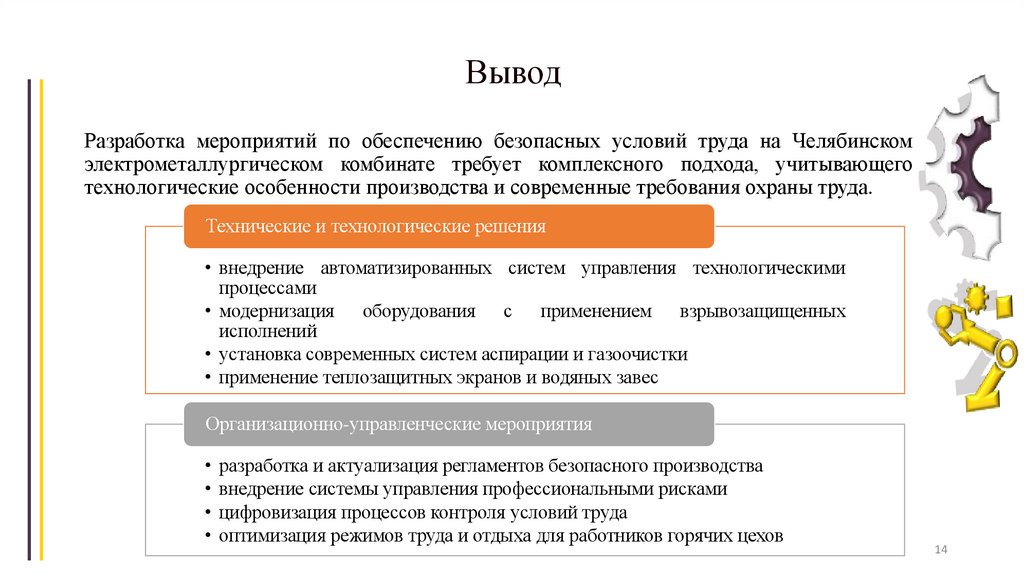 ВыводРазработка мероприятий по обеспечению безопасных условий труда на Челябинском