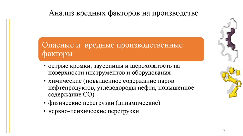 Анализ вредных факторов на производствеОпасные и вредные производственные