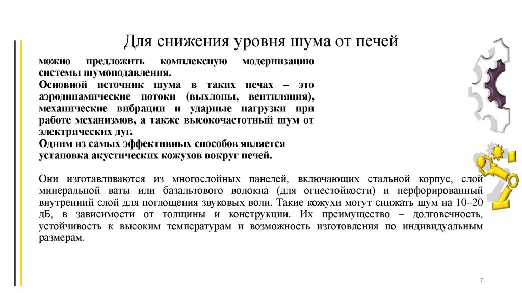 Источником шума на Челябинском электрометаллургическом комбинате являются:дуговые печи (до 110 дБ);