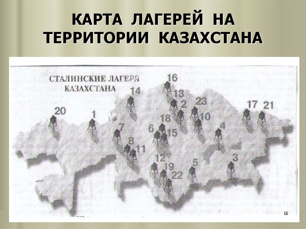 1516. КАРТА ЛАГЕРЕЙ НА ТЕРРИТОРИИ КАЗАХСТАНА