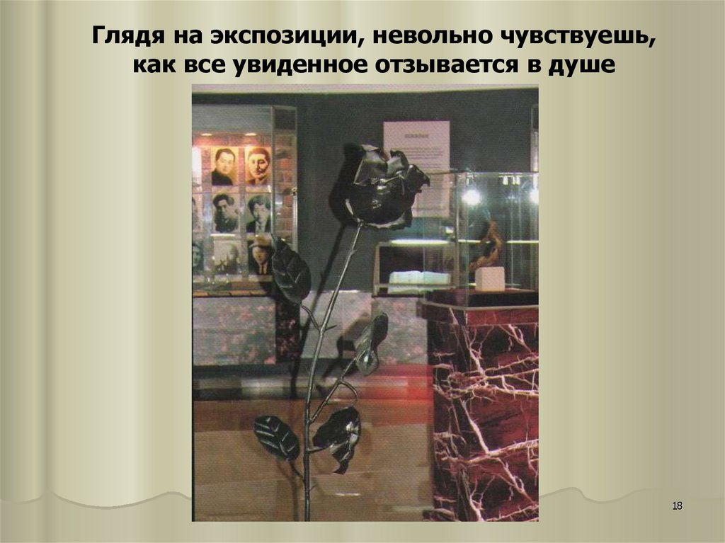 Глядя на экспозиции, невольно чувствуешь,как все увиденное отзывается в душе