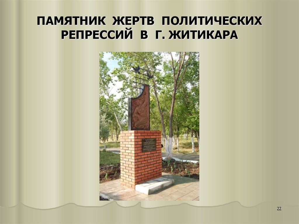 22. ПАМЯТНИК ЖЕРТВ ПОЛИТИЧЕСКИХ РЕПРЕССИЙ В Г. ЖИТИКАРА