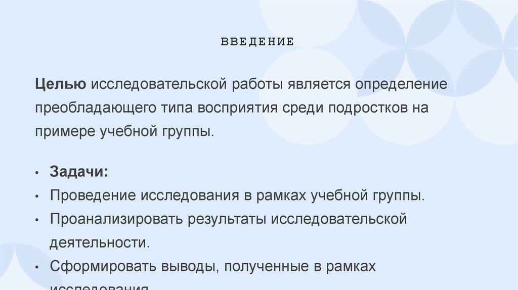 ВВЕДЕНИЕЦелью исследовательской работы является определение