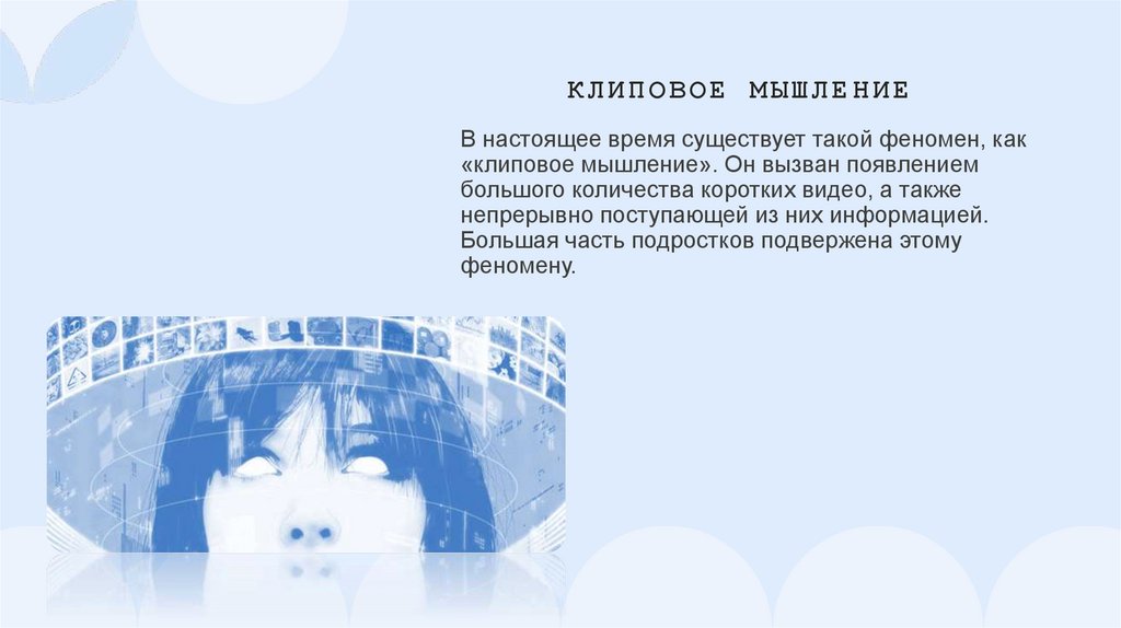 КЛИПОВОЕ МЫШЛЕНИЕВ настоящее время существует такой феномен, как