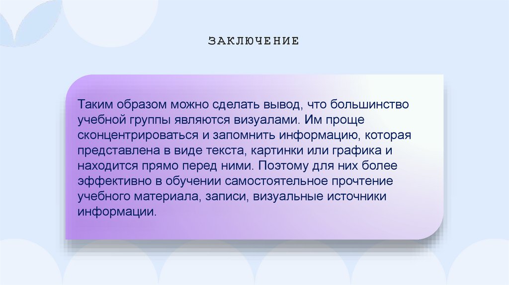 ЗАКЛЮЧЕНИЕТаким образом можно сделать вывод, что большинство