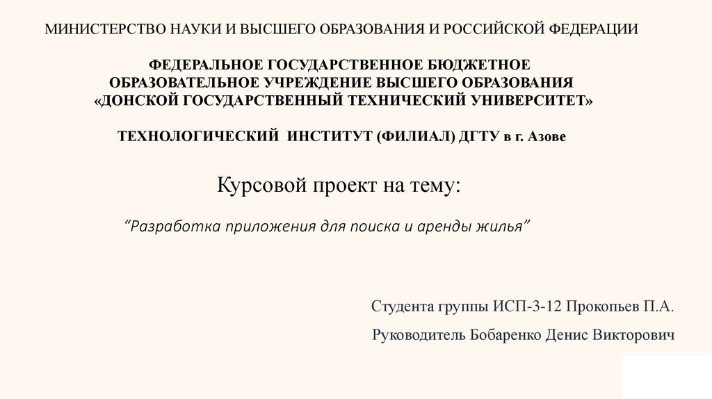 Разработка приложения для поиска и аренды жилья. Курсовой проект