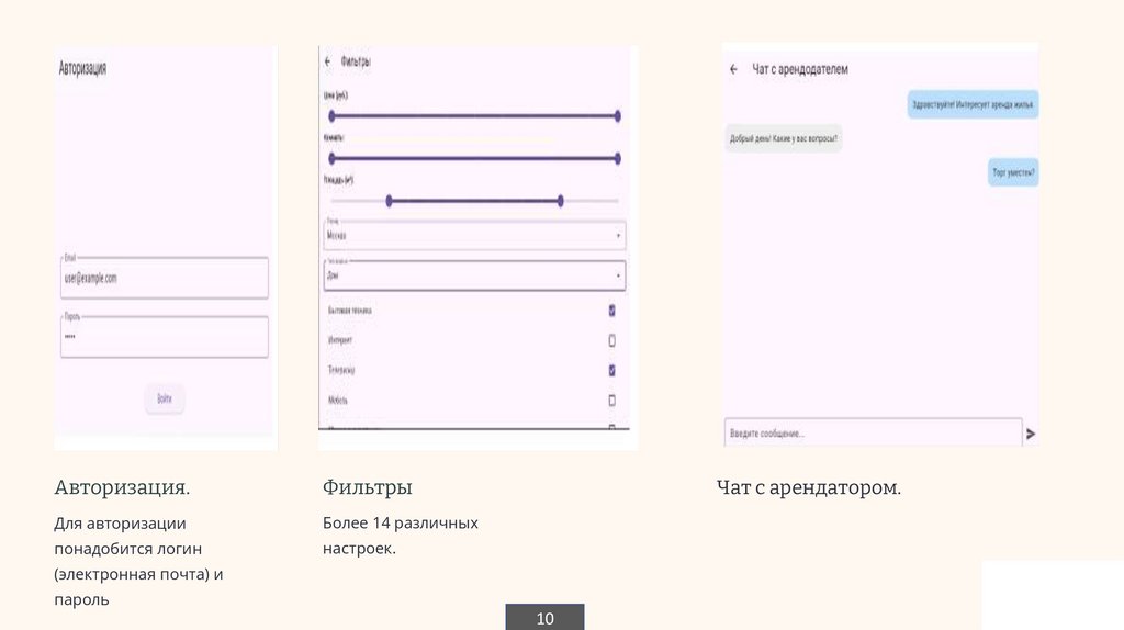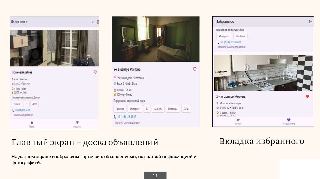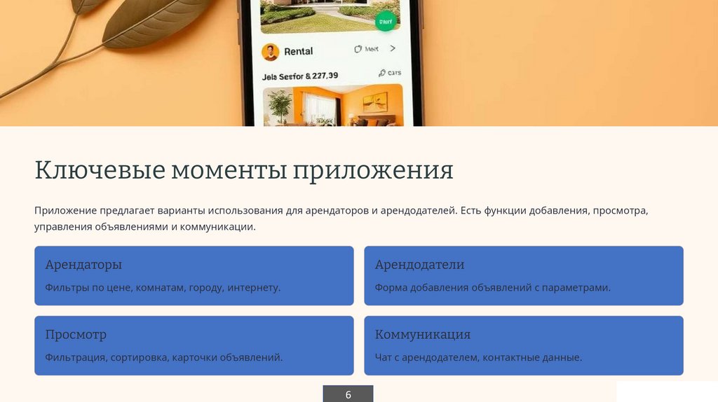 Ключевые моменты приложенияПриложение предлагает варианты использования для арендаторов и арендодателей. Есть функции добавления, просмотра,