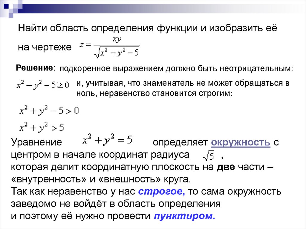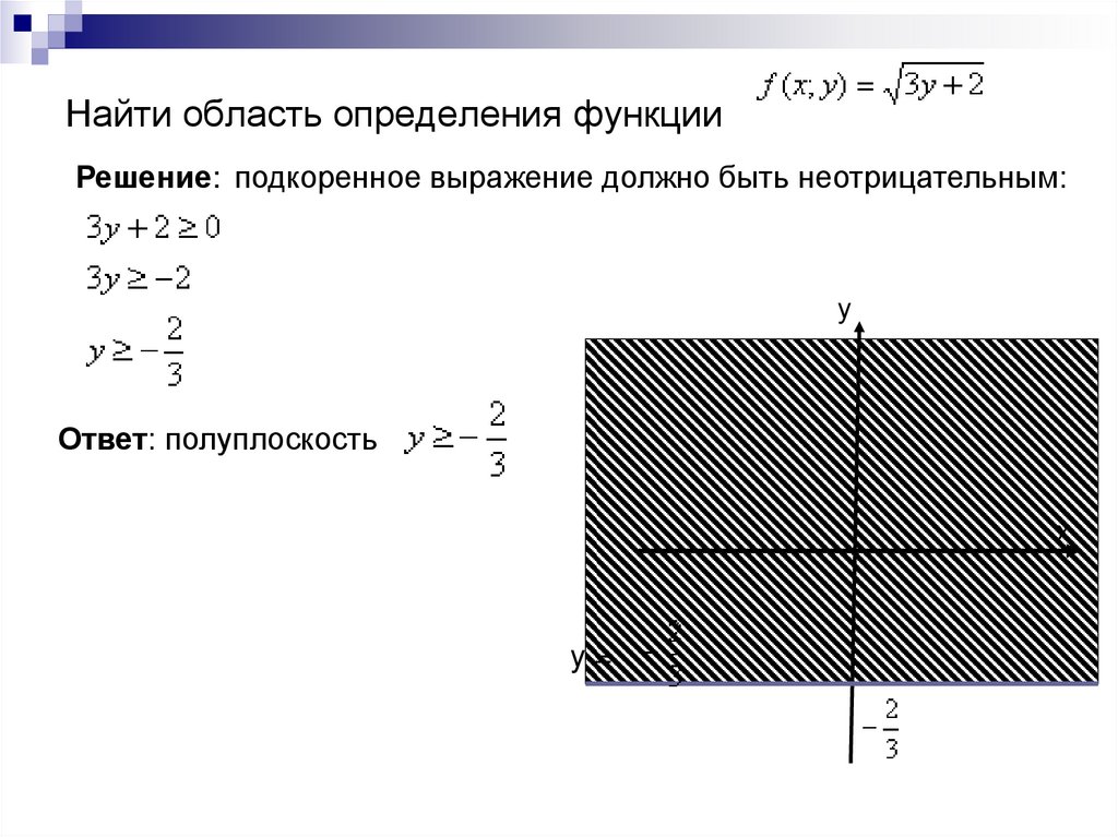 Найти область определения функцииРешение: подкоренное выражение должно быть неотрицательным: