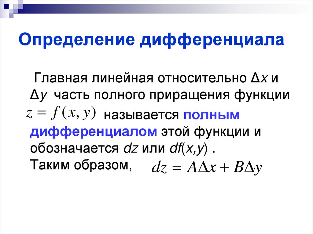 Если обеим переменным дать приращение,то функция получит полное приращение