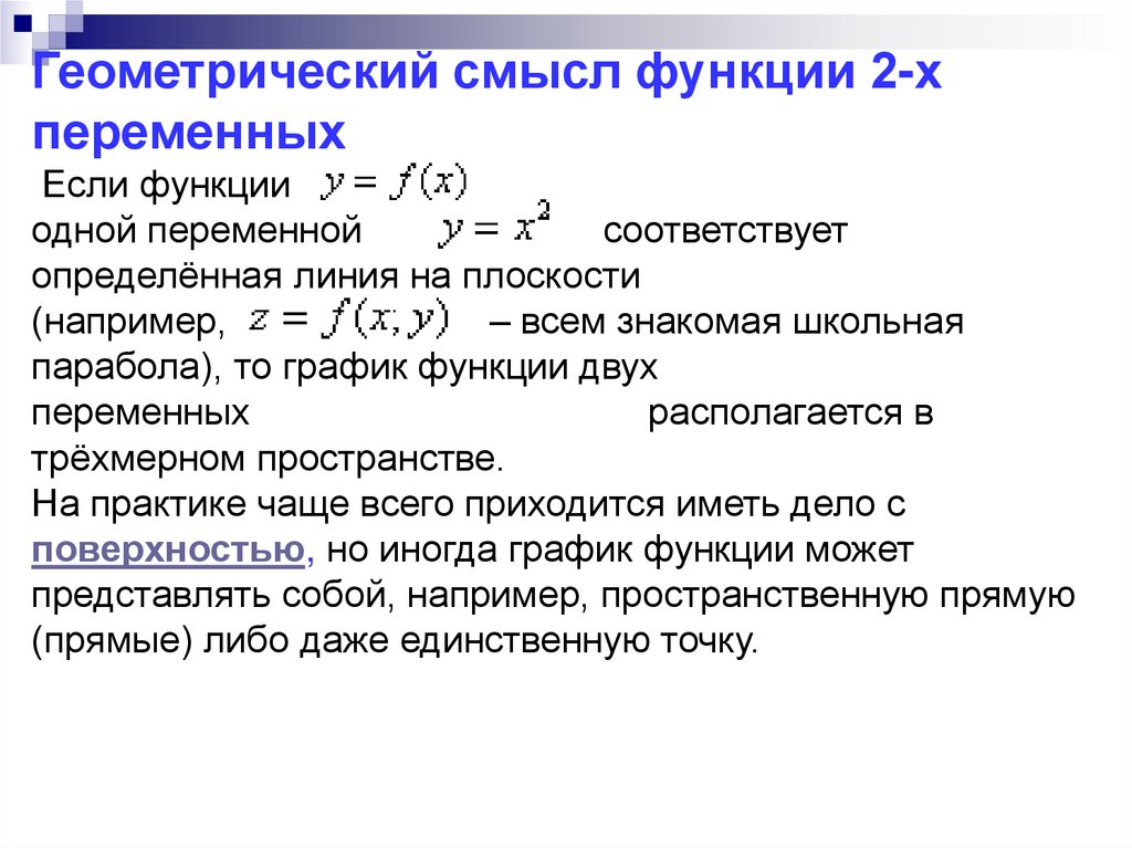 18. Геометрическая интерпретация частных производных функции двух переменных
