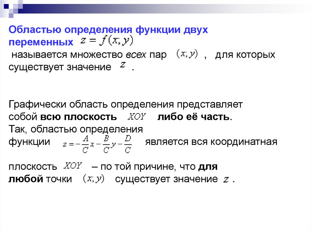Функцией двух переменных называется закон,по которому каждой паре значений независимых