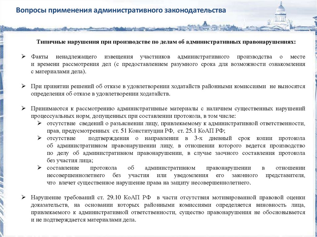 Вопросы применения административного законодательстваТипичные нарушения при производстве по делам об административных правонарушениях:
