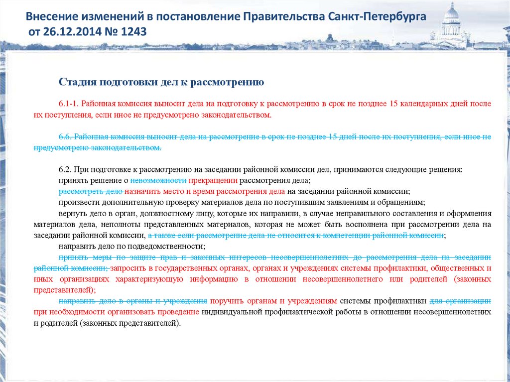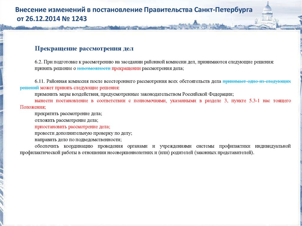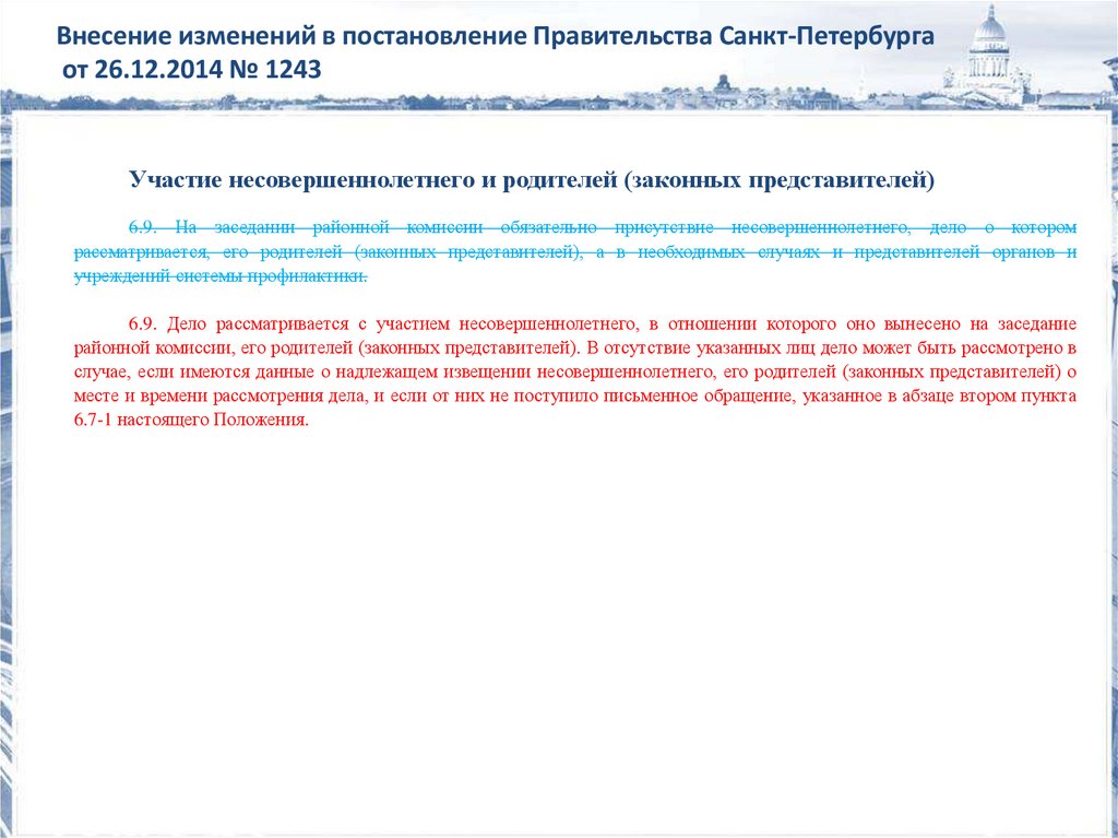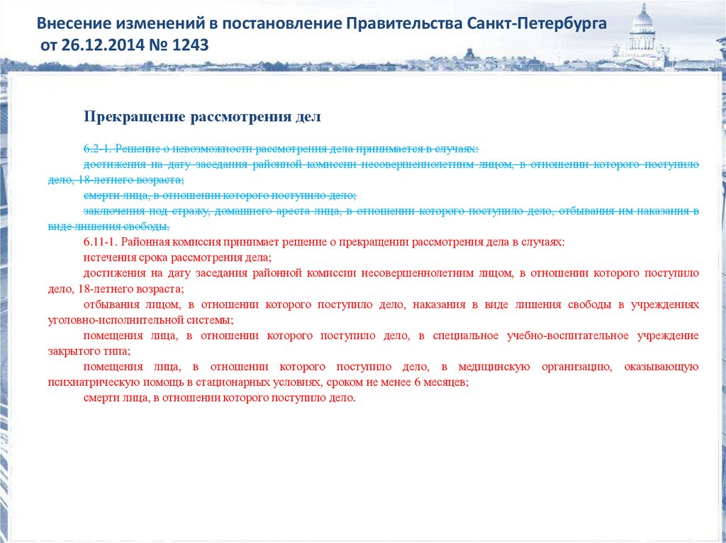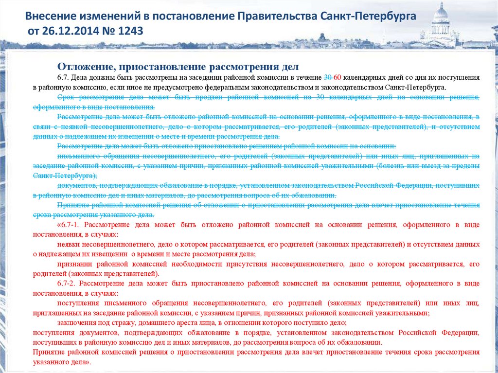 Внесение изменений в постановление Правительства Санкт-Петербургаот 26.12.2014 № 1243
