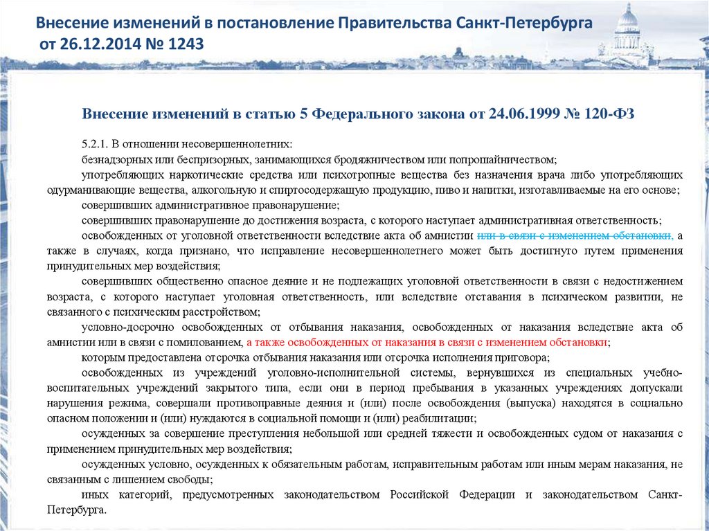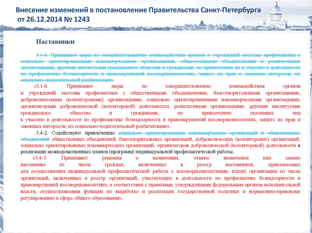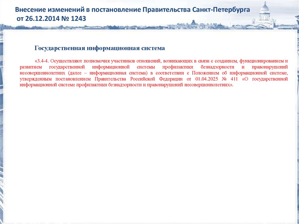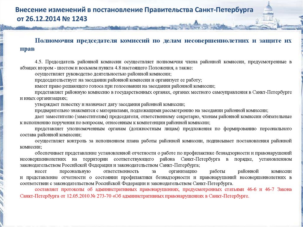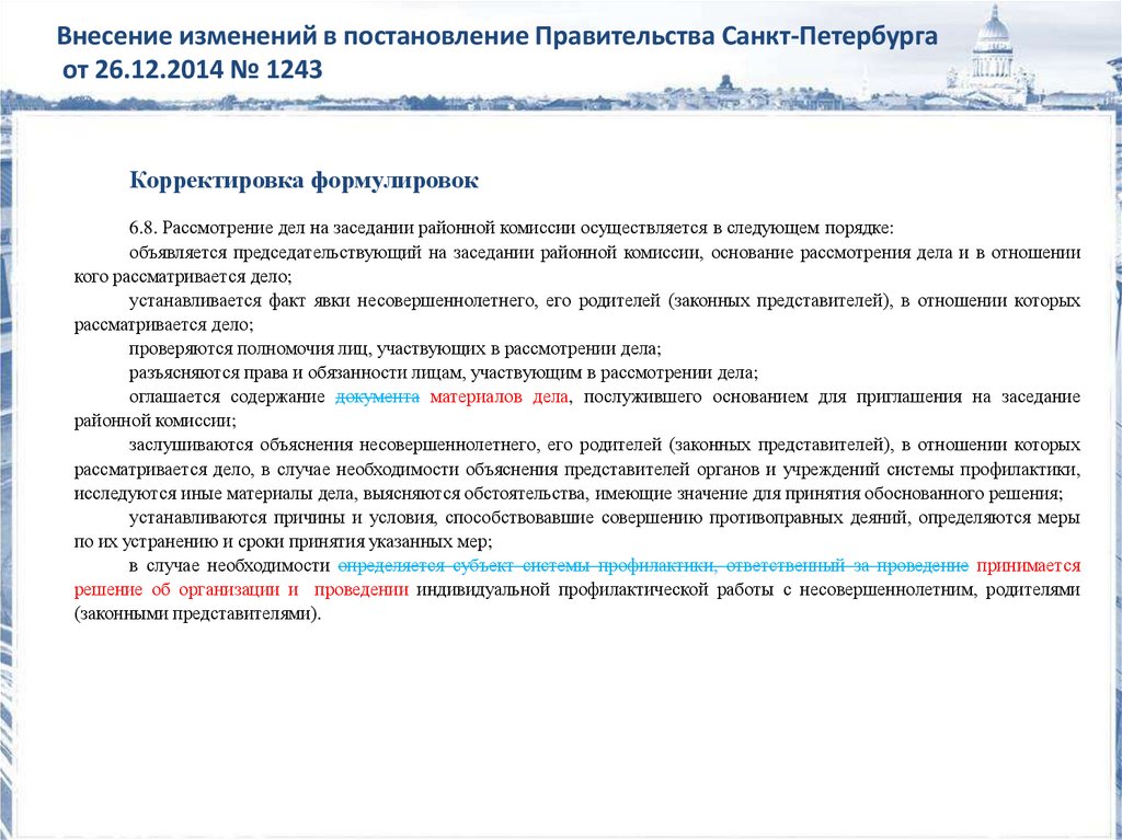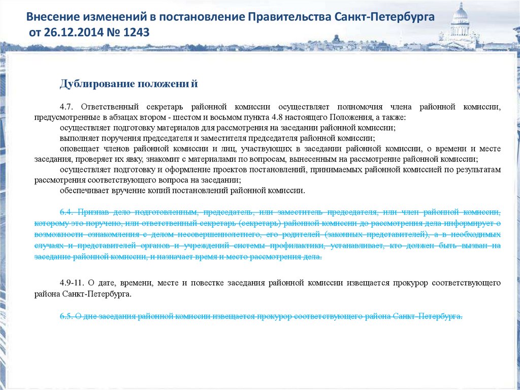 Внесение изменений в постановление Правительства Санкт-Петербургаот 26.12.2014 № 1243