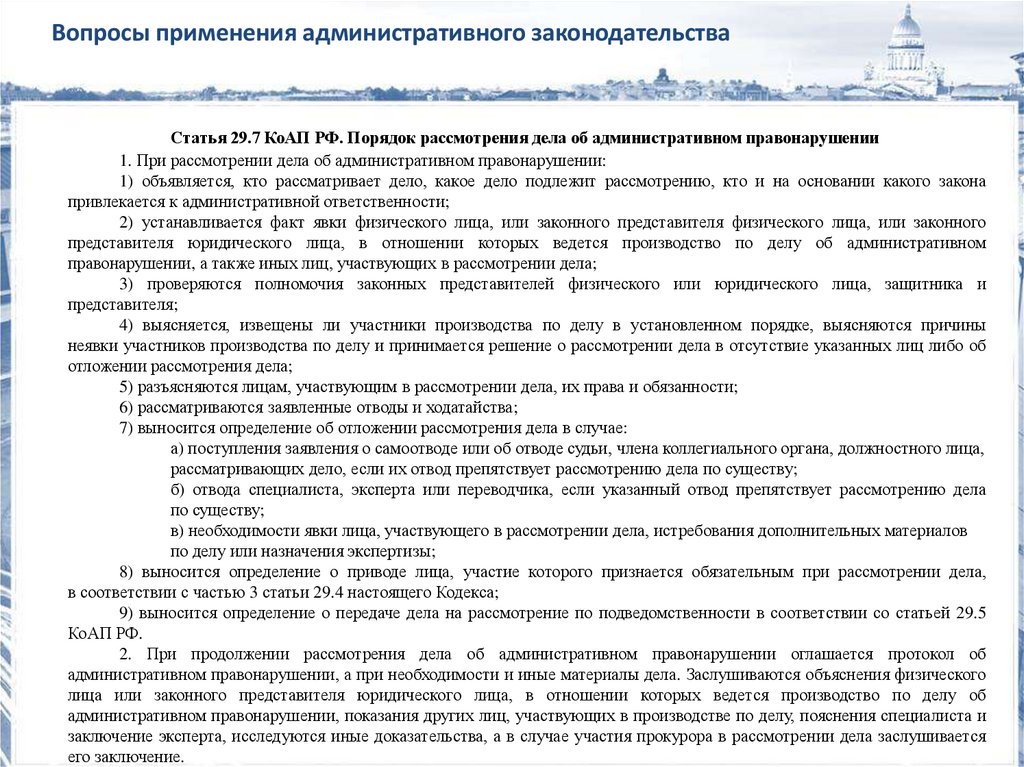 Вопросы применения административного законодательстваСтатья 29.7 КоАП РФ. Порядок рассмотрения дела об административном правонарушении