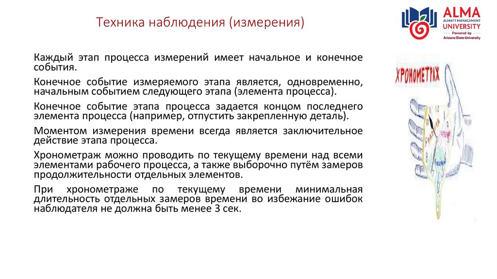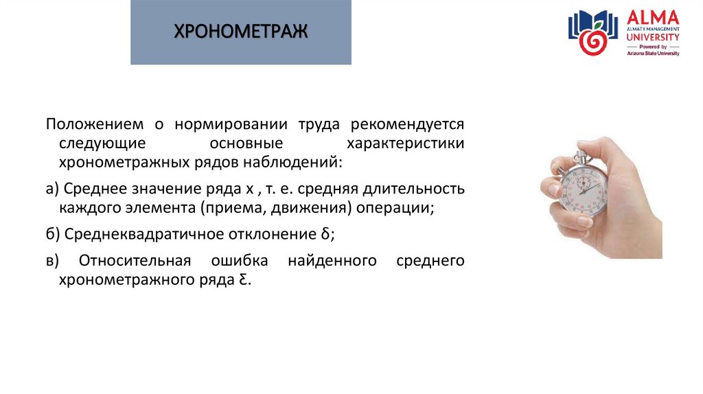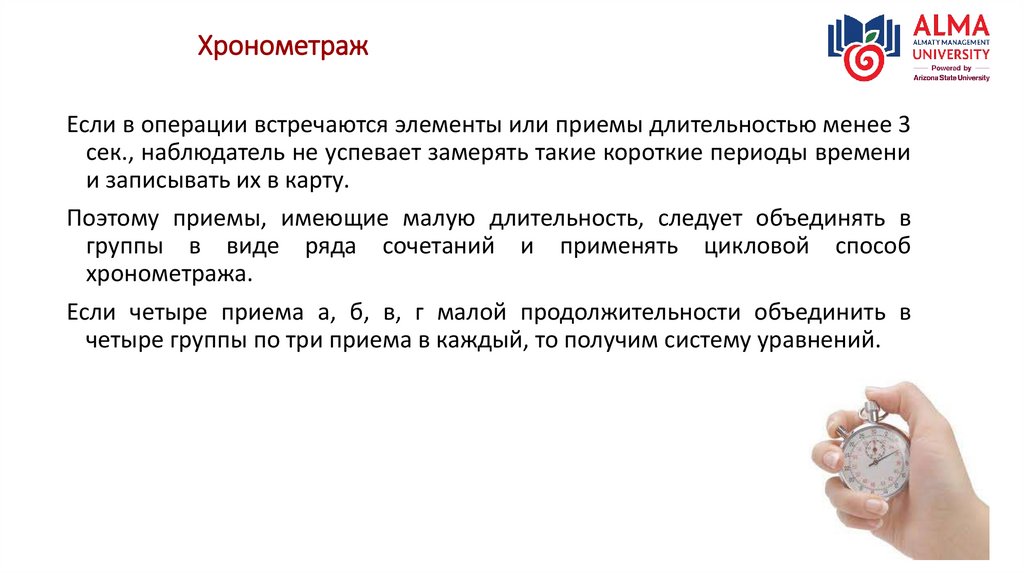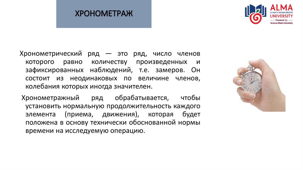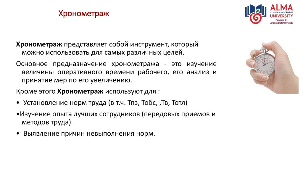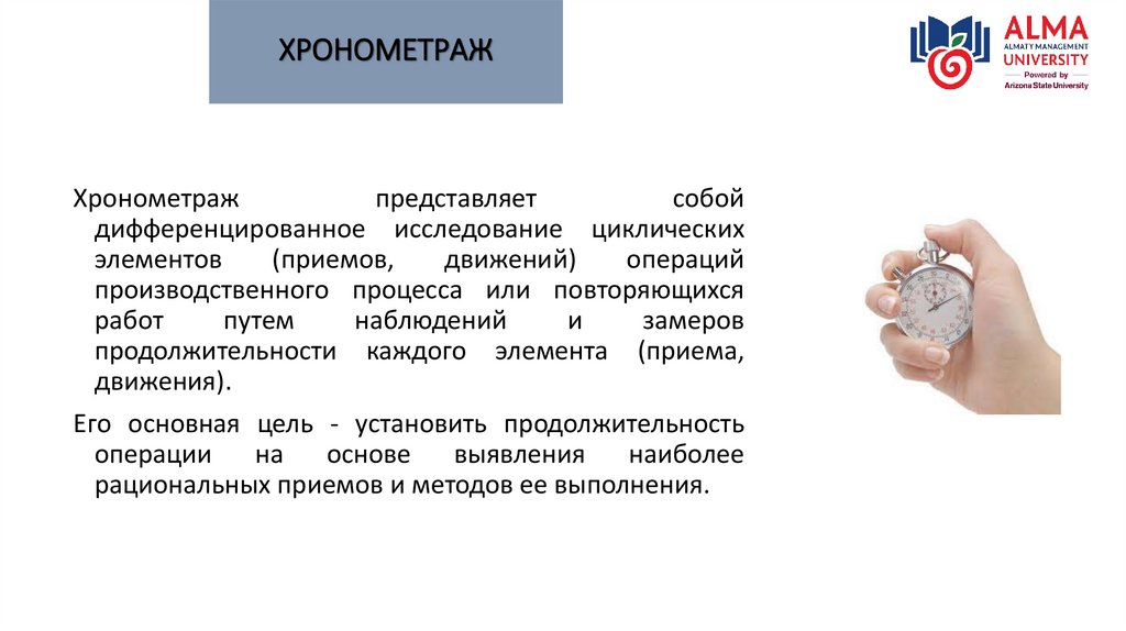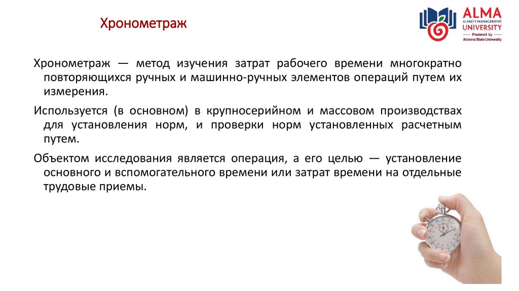 Хронометраж — метод изучения затрат рабочего времени многократноповторяющихся ручных и машинно-ручных элементов операций путем их