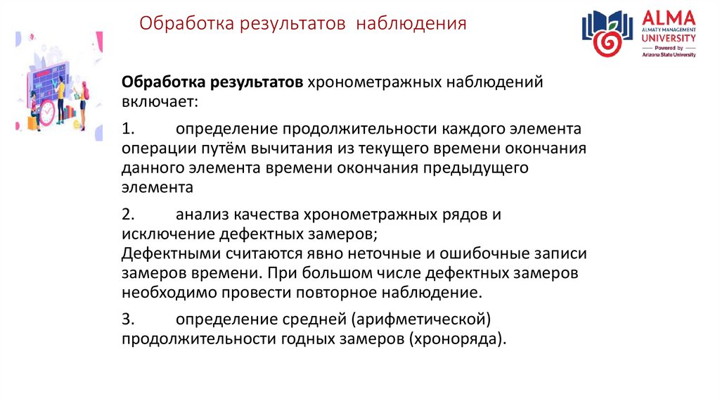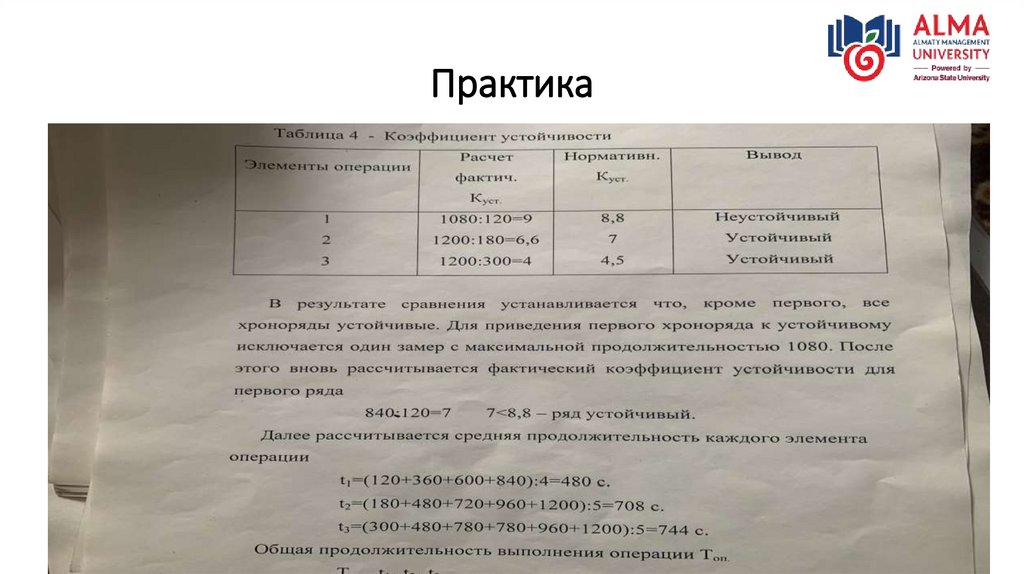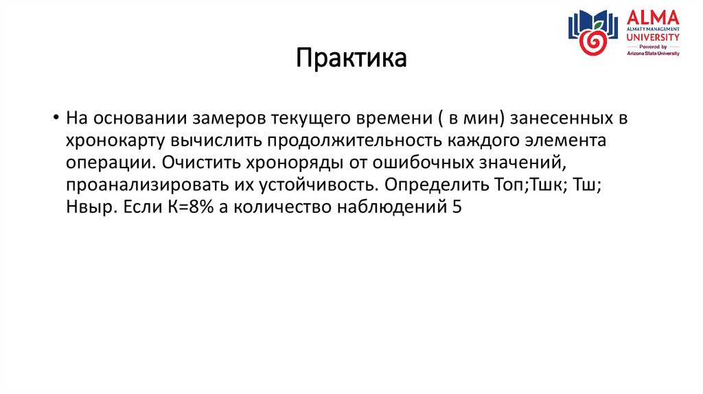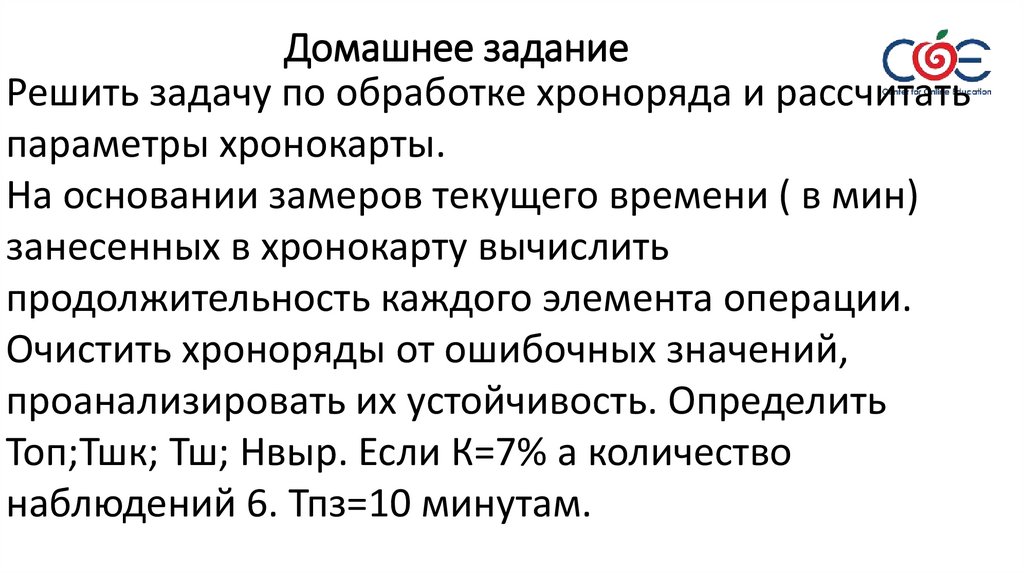 • На основании замеров текущего времени ( в мин) занесенных вхронокарту вычислить продолжительность каждого элемента