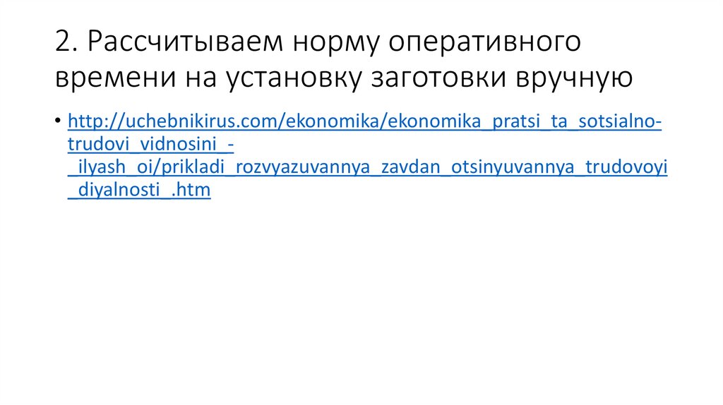 31. 2. Рассчитываем норму оперативного времени на установку заготовки вручную