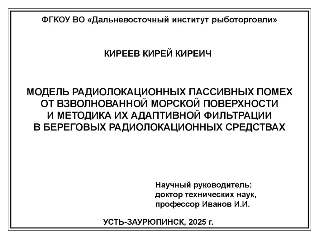 ФГКОУ ВО «Дальневосточный институт рыболовного флота»КИРЕЕВ КИРЕЙ КИРЕИЧ