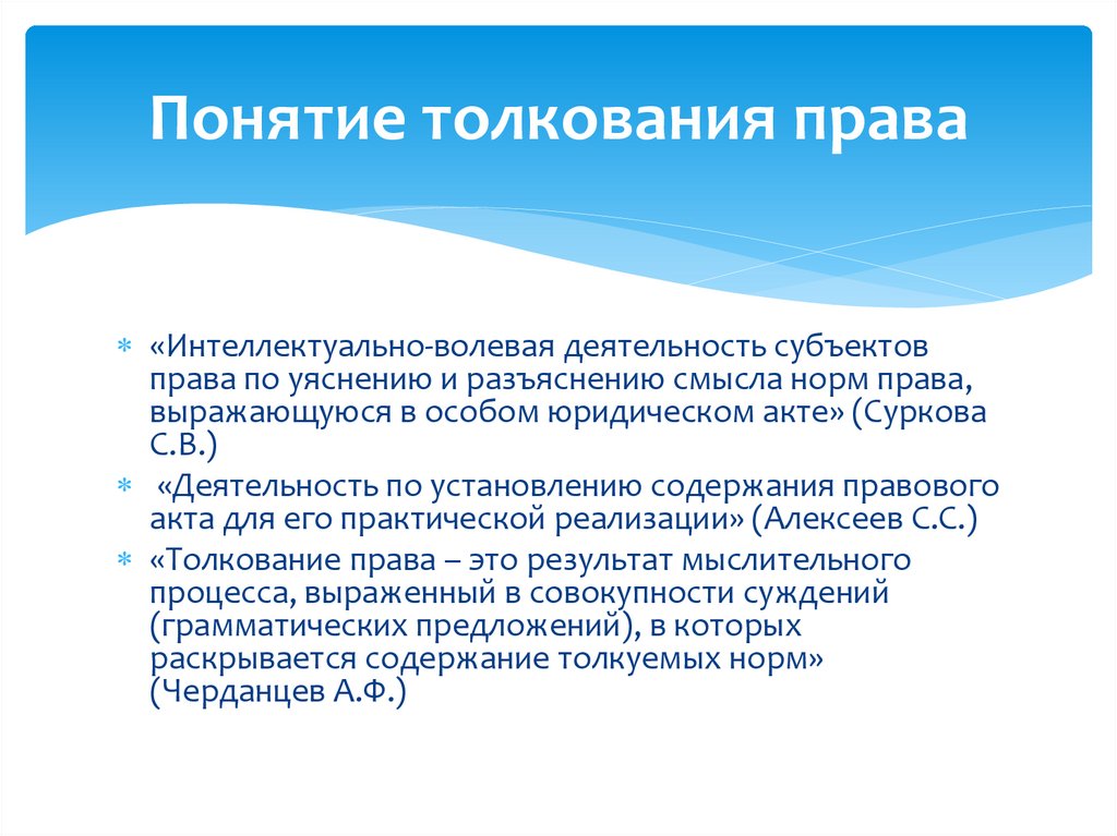 «Интеллектуально-волевая деятельность субъектовправа по уяснению и разъяснению смысла норм права,