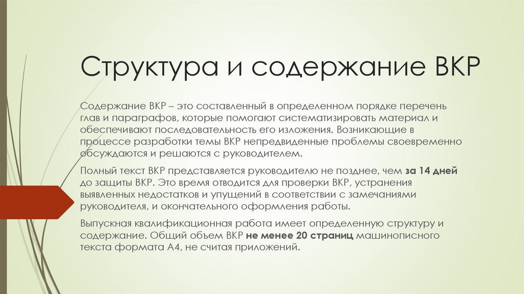 содержание. Общий объем ВКР не менее 20 страниц машинописного