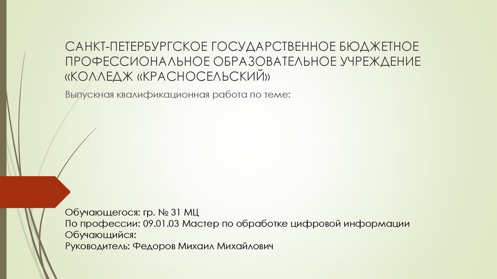 13. САНКТ-ПЕТЕРБУРГСКОЕ ГОСУДАРСТВЕННОЕ БЮДЖЕТНОЕ ПРОФЕССИОНАЛЬНОЕ ОБРАЗОВАТЕЛЬНОЕ УЧРЕЖДЕНИЕ «КОЛЛЕДЖ «КРАСНОСЕЛЬСКИЙ»