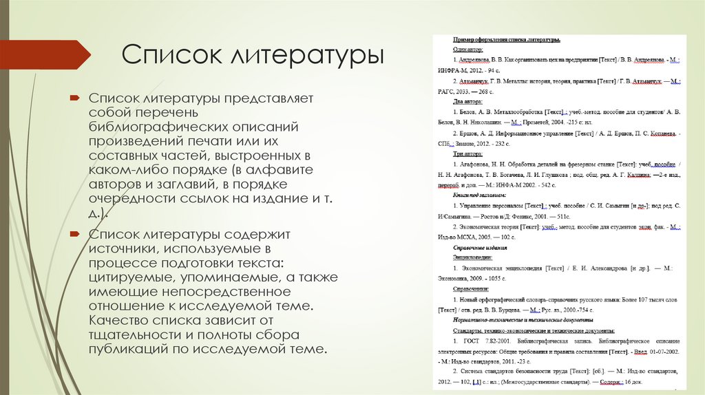 Список литературы представляетсобой перечень