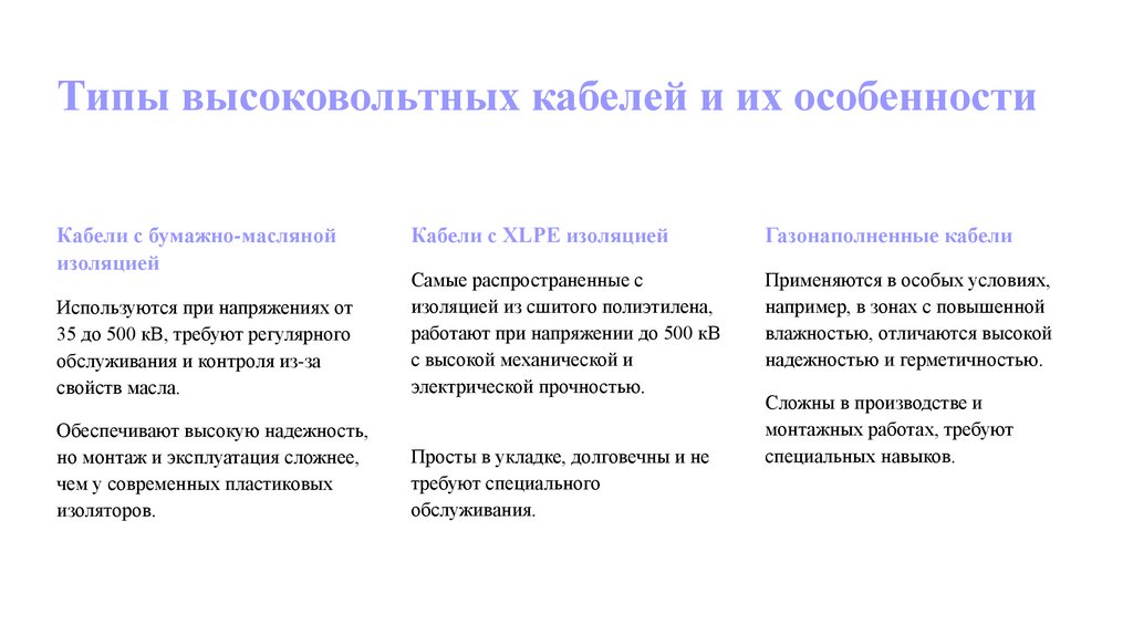 Типы высоковольтных кабелей и их особенностиКабели с бумажно-масляной