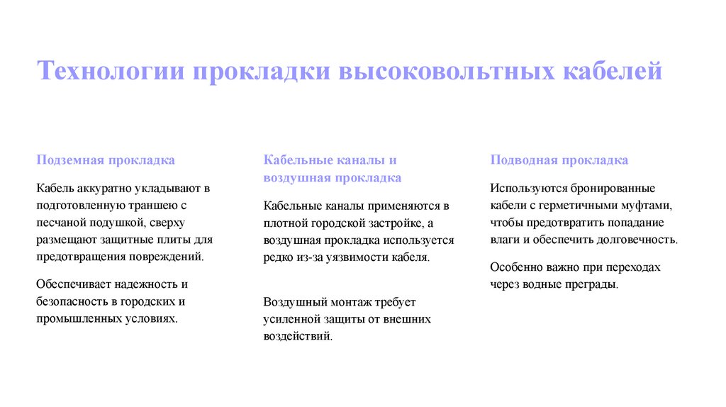 Технологии прокладки высоковольтных кабелейПодземная прокладка