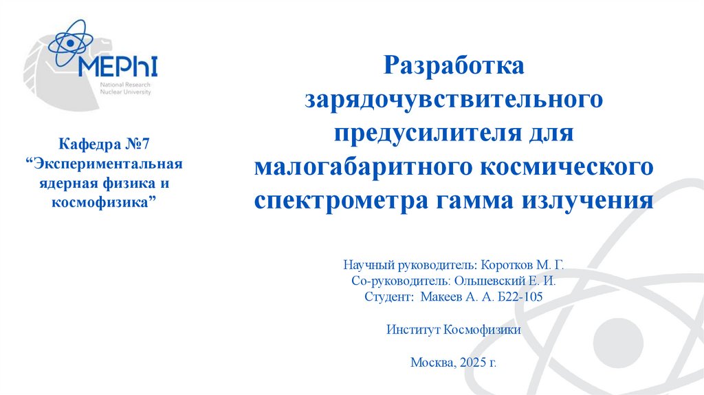 Разработка зарядочувствительного предусилителя для малогабаритного космического спектрометра гамма излучения