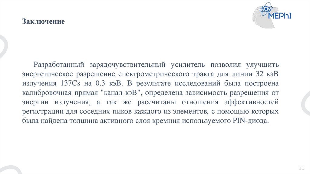 ЗаключениеРазработанный зарядочувствительный усилитель позволил улучшить