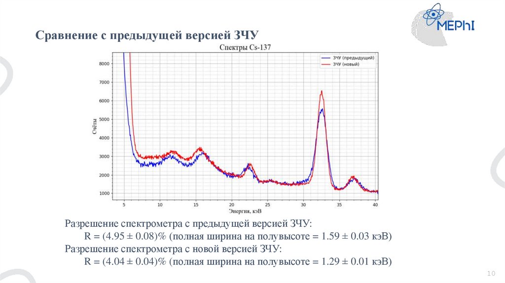 Сравнение с предыдущей версией ЗЧУРазрешение спектрометра с предыдущей версией ЗЧУ: