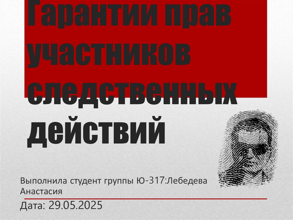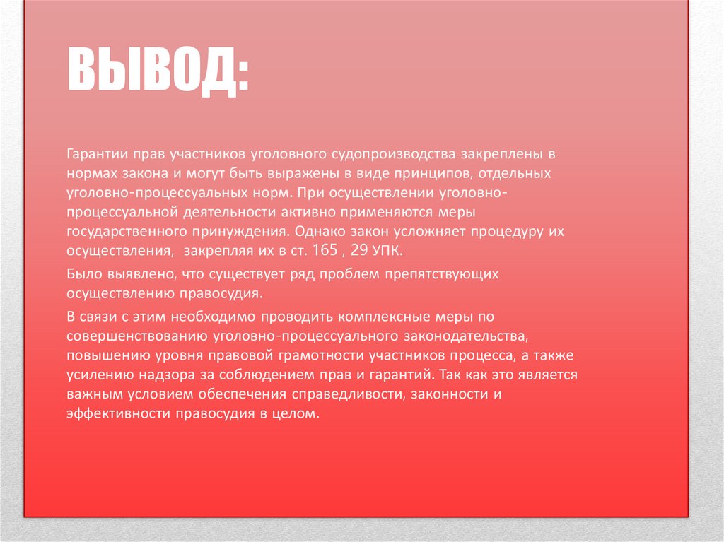 ВЫВОД:Гарантии прав участников уголовного судопроизводства закреплены в