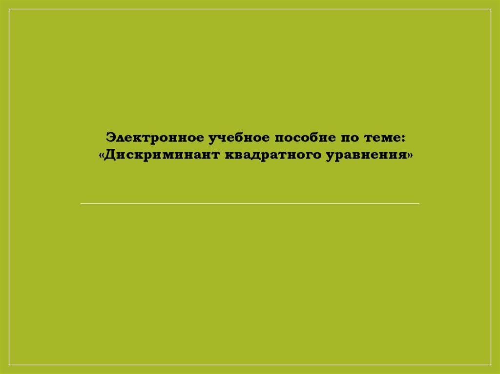 Электронное учебное пособие по теме:«Дискриминант квадратного уравнения»